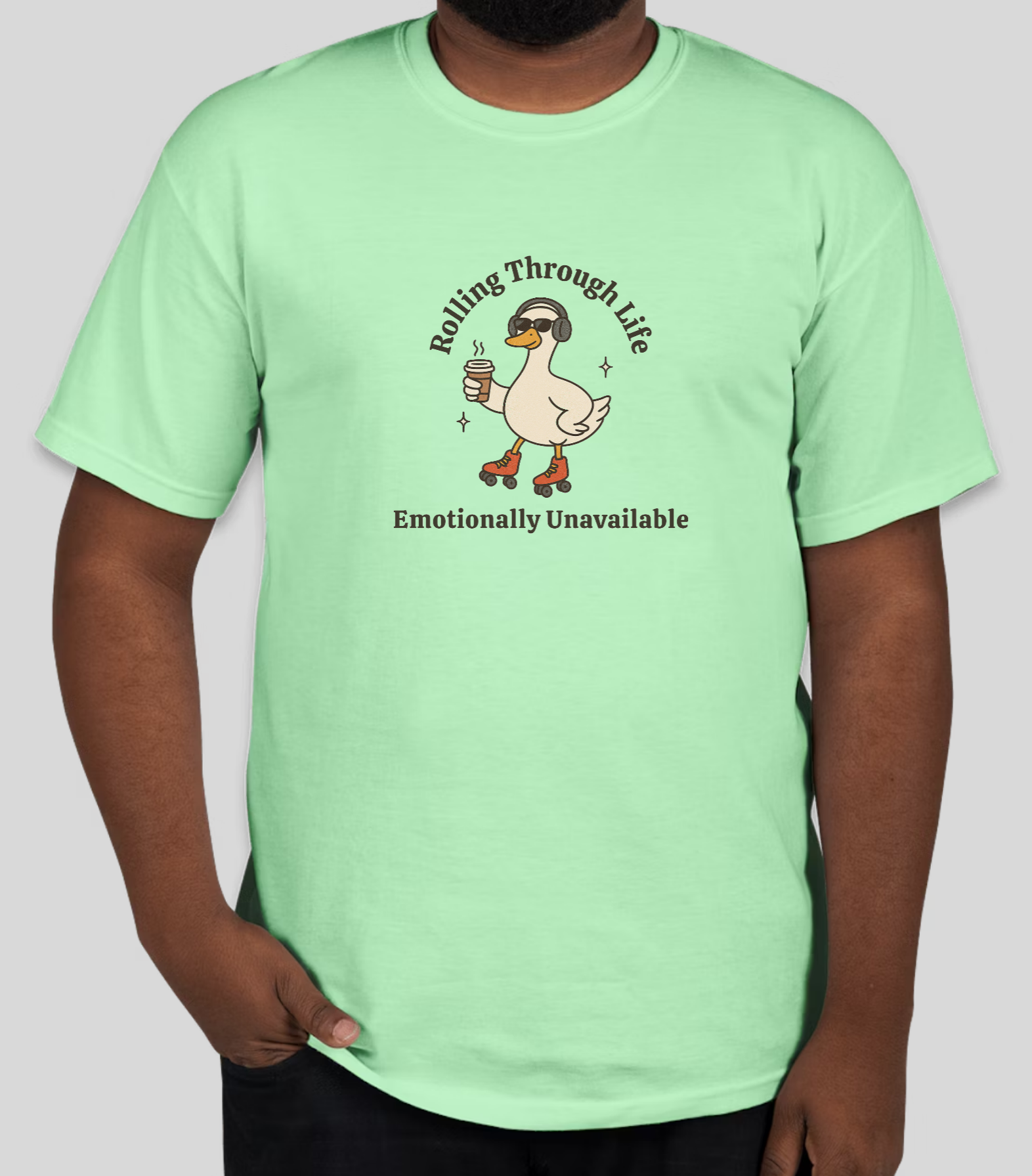 Life’s chaotic, your emotional walls are high, and that’s okay — you’ve got this tee and a deeply relatable goose to lead the way.